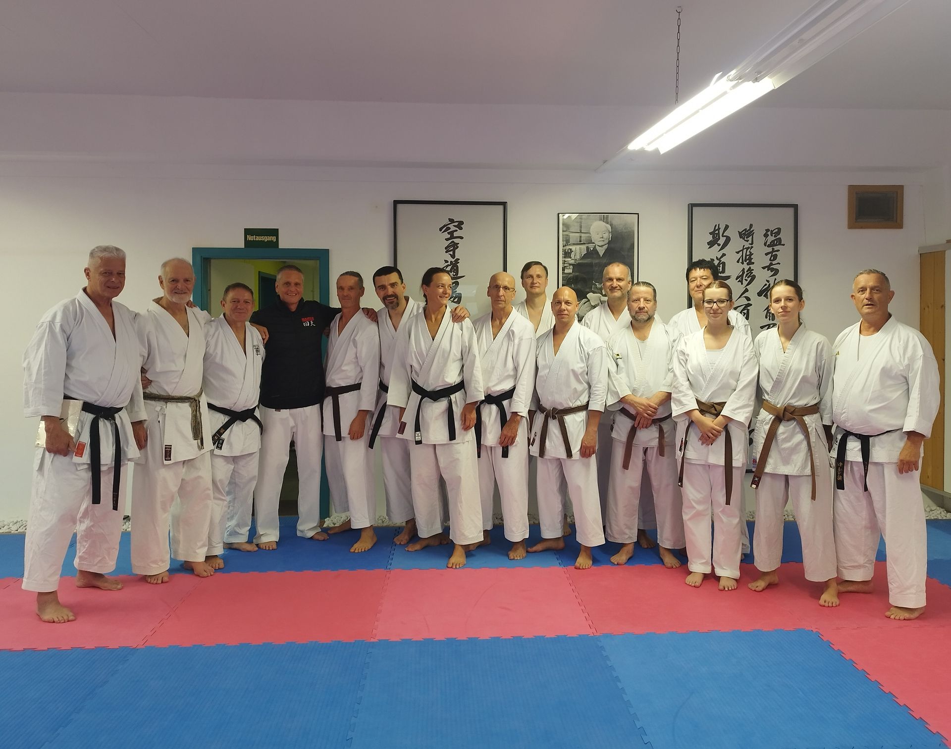 Im Rahmen der Dan-Vorbereitung unserer Prüflinge für das Shotokan Event 2026 in Kamenz, reisten 14 Prüflinge und Trainer zu einem speziellen Lehrgang nach Mendig. Unter dem Motto „Karate ist Selbstverteidigung“ lud der Rheinland-Pfälzische Karateverband zu einem Seminar mit Gunar Weichert (8. Dan ), Klaus Sterba (9. Dan) und Jürgen Kestner (8. Dan und SV-Spezialist in der Polizei-Ausbildung) ein. Die Verbindung von Kihon (dem Training umfangreicher koordinativer und konditioneller Fähigkeiten), der Kata (traditionelle Bewegungsformen der Verteidigung) und die Anpassung der Techniken an die Anforderungen moderner Selbstverteidigung gaben einen enormen Input für die Vorbereitung der Aspiranten von Tomogara für ihre Prüfungskata. Besonders die zwei Stunden Feinschliff nach dem eigentlichen Lehrgang mit Meister Sterba und Weichert machten die knapp 600 km Anreise lohnenswert.