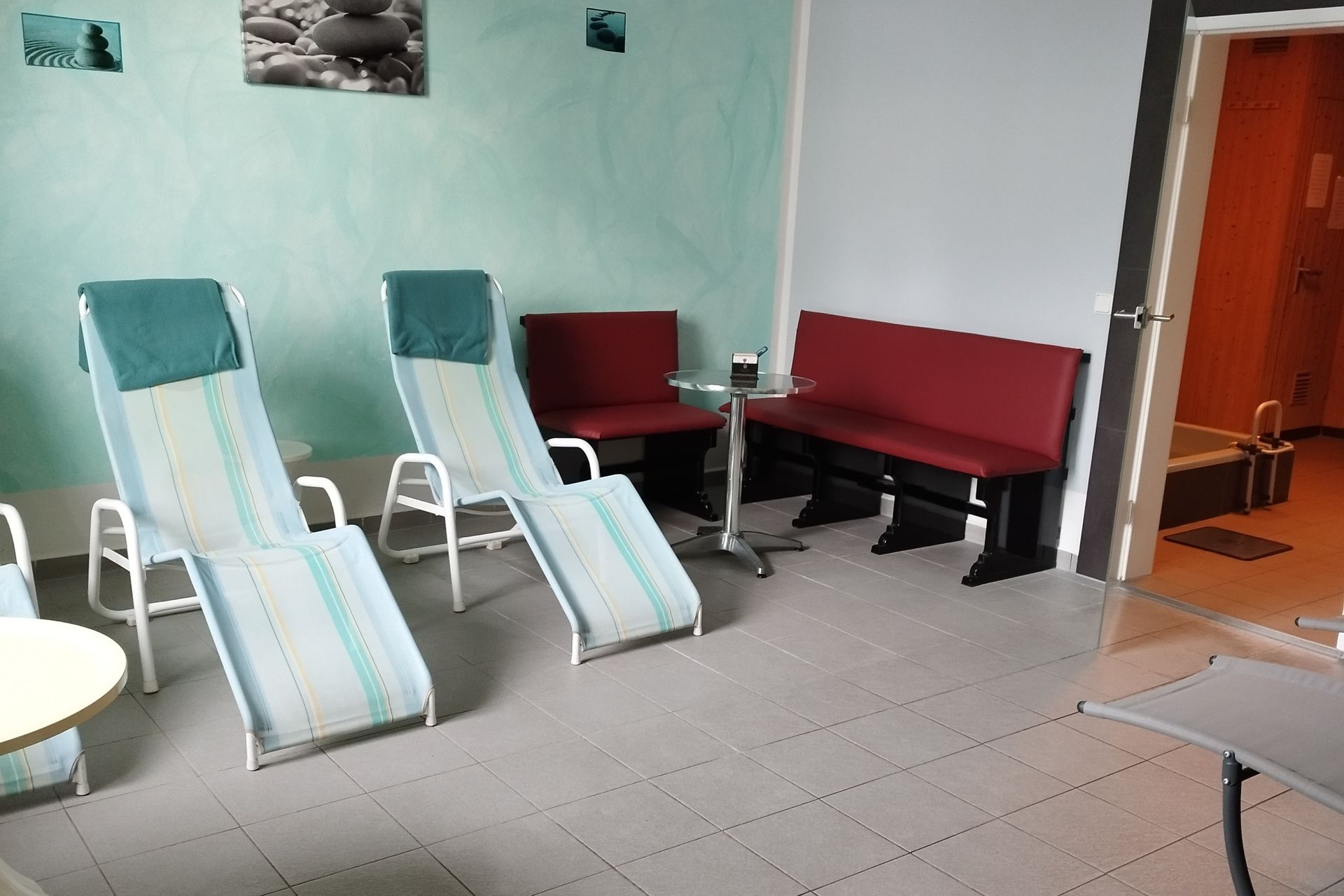 Kommunikation und Entspannung kommen bei uns auch nicht zu kurz. In unserer geräumigen Sauna können sie ohne großen körperlichen Einsatz zum Schwitzen kommen. Durch den vorhandenen Ruheraum kann man seine Pausen und Saunagänge individuell gestalten.